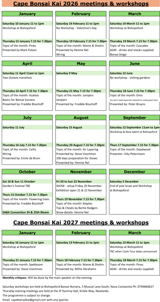 Cape Bonsai Kai Events